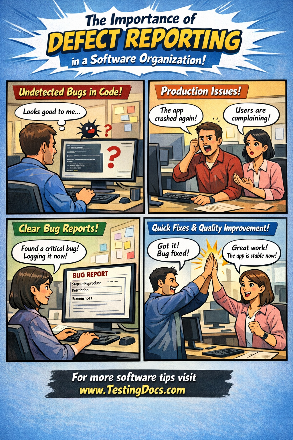 - Log the defect into a defect tracking tool like JIRA or Bugzilla.