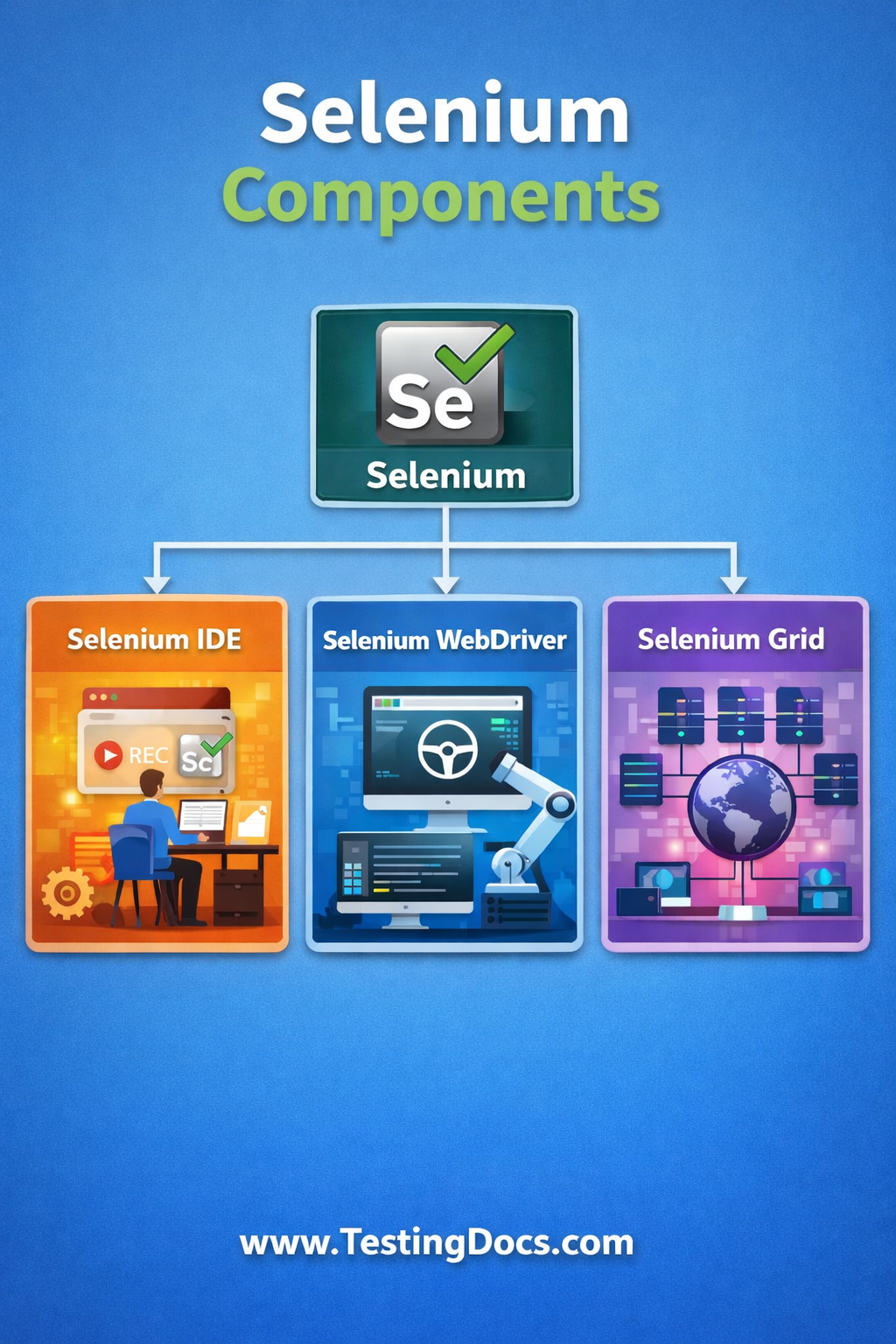 In this tutorial, let’s learn about different Selenium components. The main Selenium components are as follows: